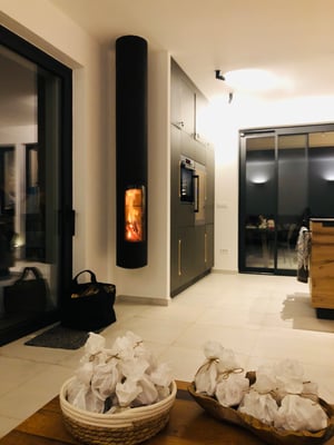 Das Sofa lässt sich dank flexibler Rückenkissen auch zum TV Lümmelsofa umfunktionieren. Smart TV, Bose Box sind selbstverständlich auch vorhanden. Der von der Decke hängende Focus Kamin lässt sich Richtung Esstisch oder Sofa drehen und bietet in der kühleren Jahreszeit wunderbare Wärme.