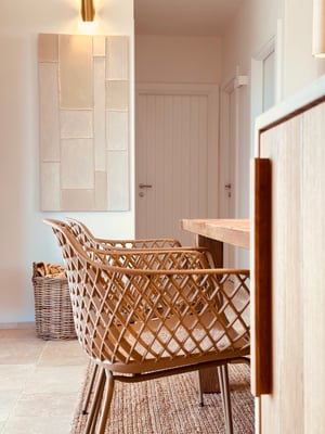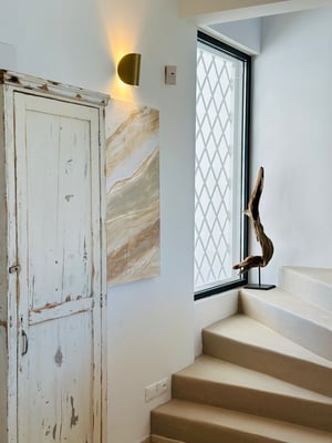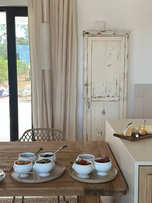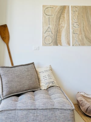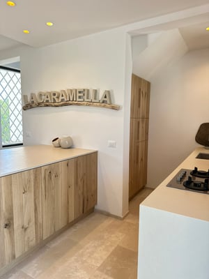La Caramella ist ein Kleinod inmitten eines blühenden Garten & Olivenhains. Direkter Meerblick von allen Zimmern / Terrassen auf der Nordseite. Du betrittst das lichtdurchflutete Haus und siehst sofort das Meer. Helle Töne besänftigen die Sinne. Hochwertige Materialien schmeicheln. Das Farbkonzept setzt sich konsequent fort und spiegelt in weiß, creme, caramelle, sand und taupe die Materialien der Region wieder. Edel ausgestattet mit hochwertigen Möbeln, Maßanfertigungen heimischer Handwerker & Raritäten von heimischen Antikmärkten.